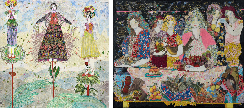 Los delicados collages a gran escala hechos de capas de papel japonés de Maria Berrio dan un lugar importante a la representación de las mujeres, con acentos oníricos que cuestiona los acontecimientos actuales. Su obra refleja las conexiones interculturales y la migración global vistas a través del prisma de su propia historia.