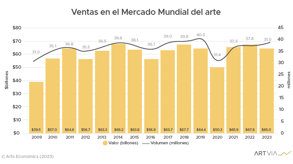 Dentro del panorama del crecimiento de las ventas de arte a nivel mundial, se han registrado caídas en 2020, 2019, 2016, 2015 y 2012, algunas mucho mayores que la caída del 4 % en 2023. Lo que marco la diferencia este ultimo año es la disminución en las ventas de obras de ultra valor. El aumento continuo de coleccionistas que recurren al crédito para financiar sus compras de arte ha significado que los factores económicos, como las tasas de interés, tengan un impacto en el gasto más significativo que antes.