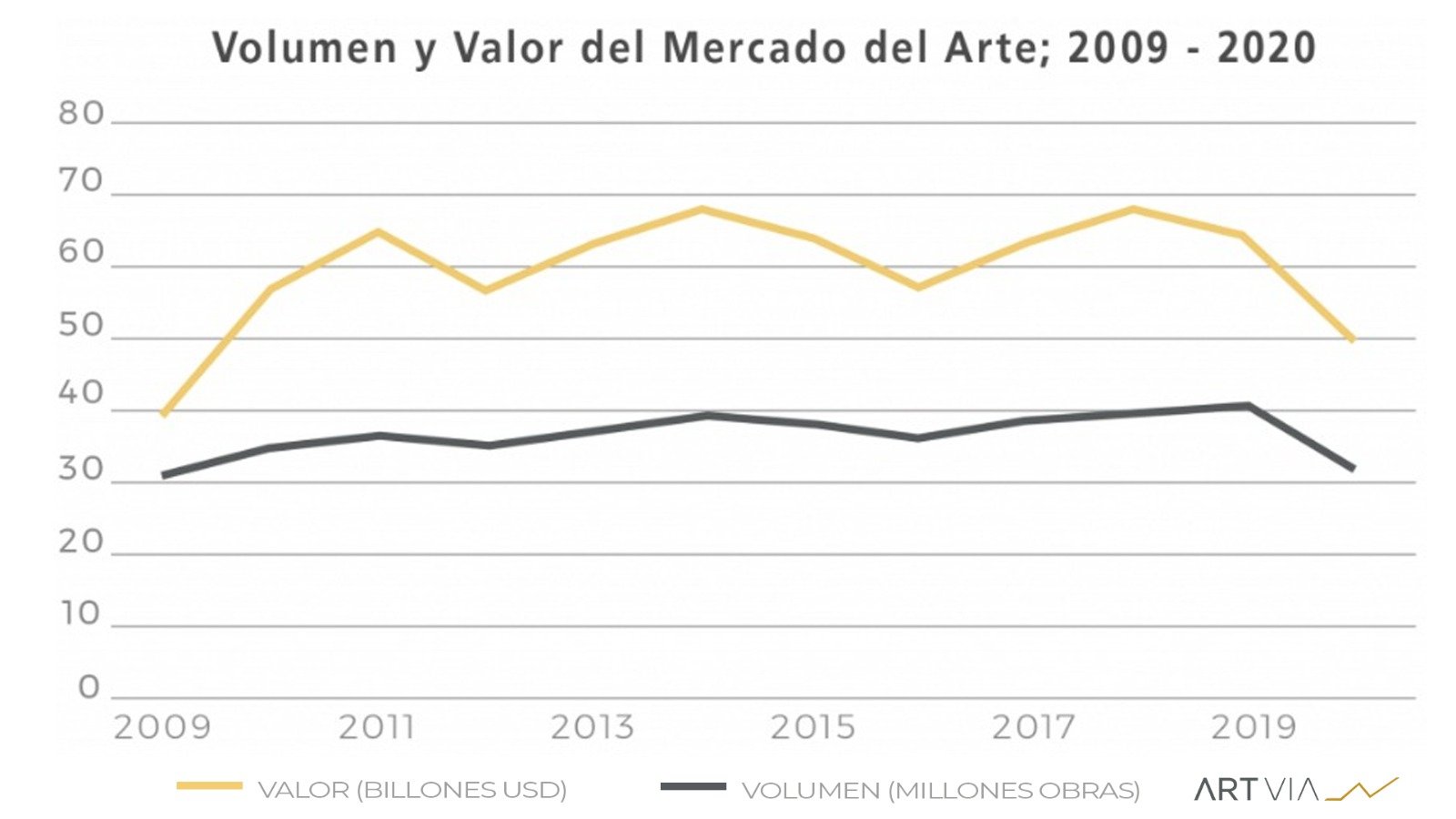En 2020, el mercado del arte se fortaleció a través de las subastas online. A su vez, recuperó el mercado en China, ya que, a pesar de la disminución de las ventas en un 22% hasta llegar a 50 billones de dólares, la caída fue significativamente menor al comportamiento durante la crisis financiera de 2008, cuando disminuyeron un 36% para ubicarse en 39.5 billones de dólares.