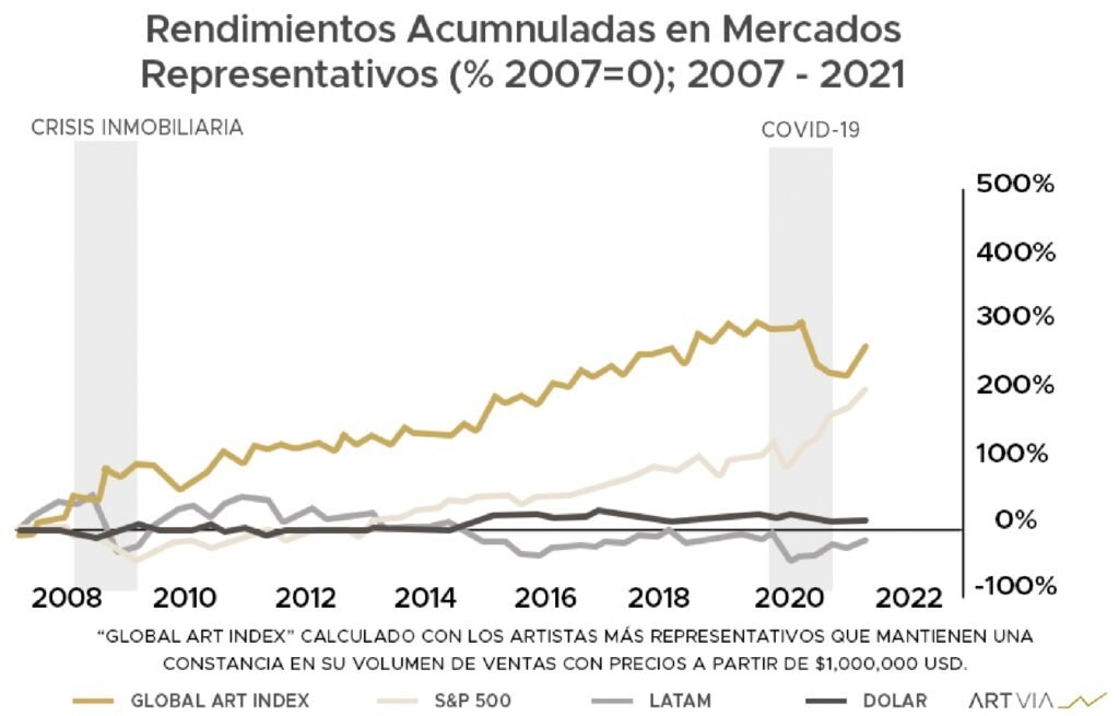 Desde 2007, las inversiones en arte incrementaron su valor en un 266%, una dinámica más alta que el S&P 500, el índice más grande y representativo del mercado financiero a nivel mundial, el cual aumentó un 202% su valor durante el mismo periodo.