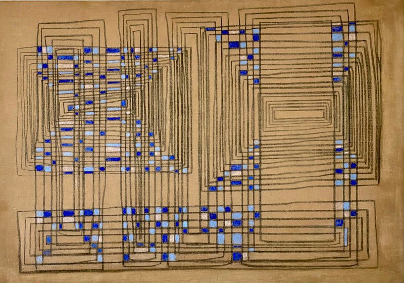 En sus pinturas, construye laberinticos tejidos plásticos dotados de una fuerza armónica visual muy arrebatadora, cuyo poder se encuentra en las maniáticas repeticiones de trazas de color y líneas que se desatan alrededor de ejes azarosos, en los que el meticuloso contraste cromático dota de vitalidad a la obra de arte.